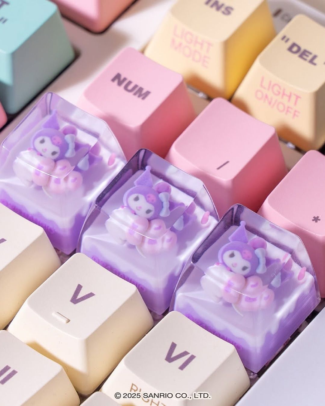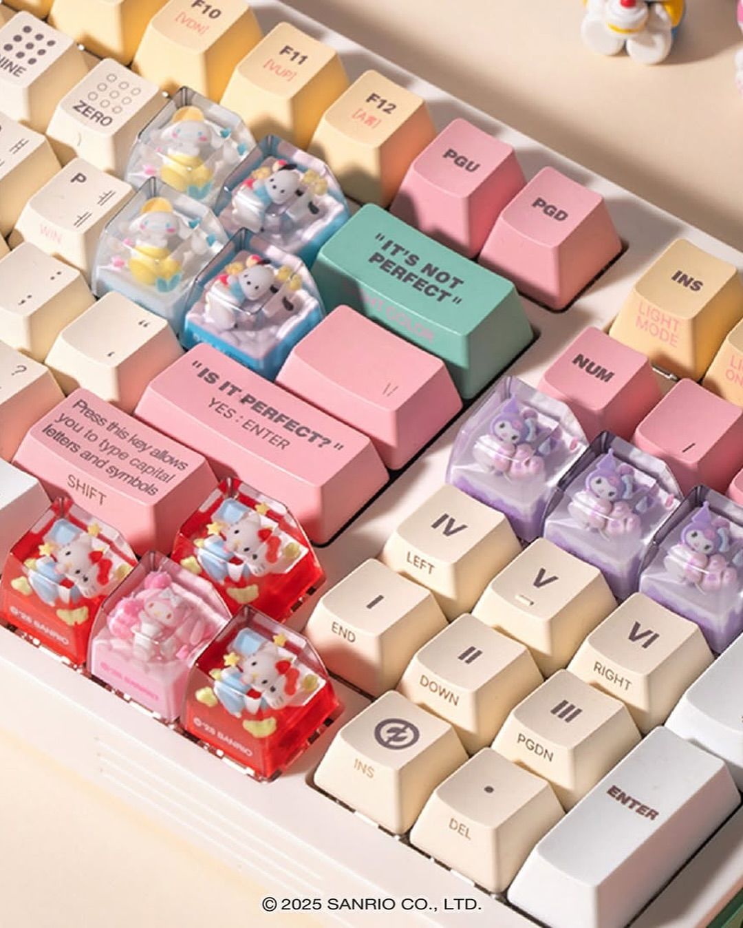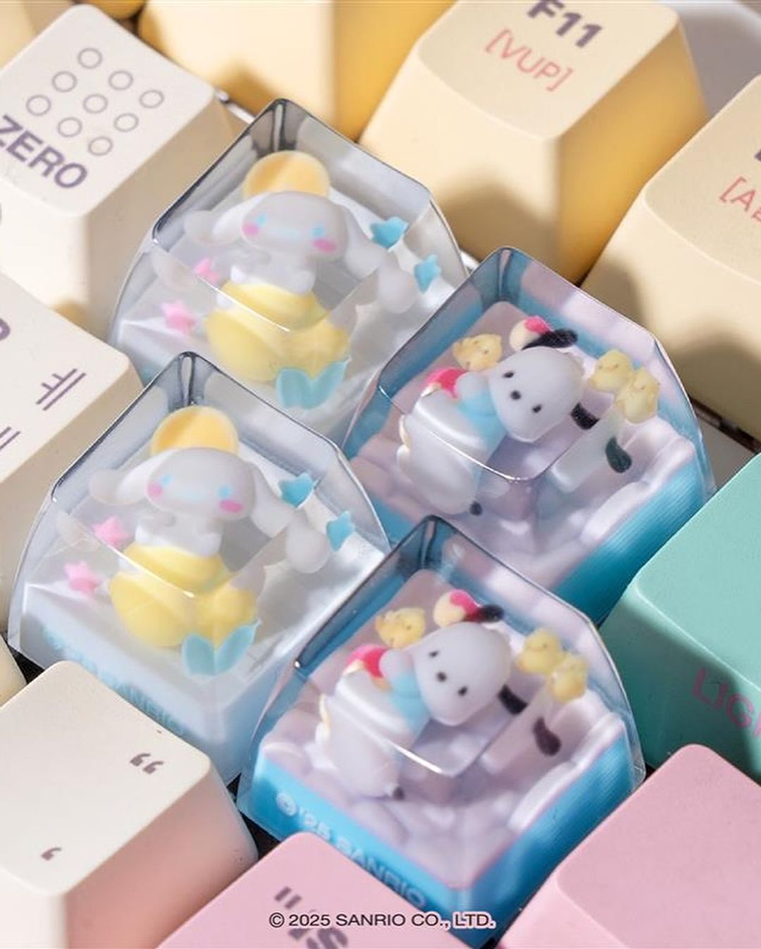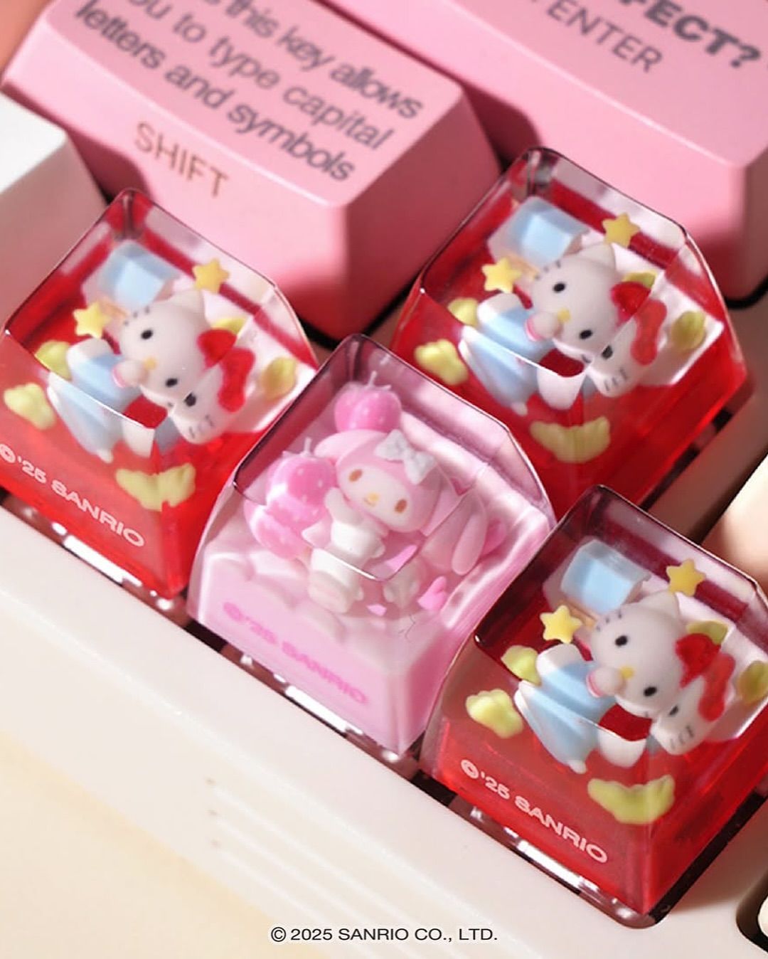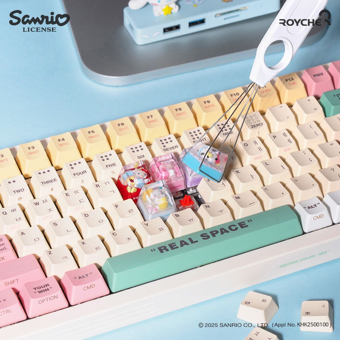 산리오(Sanrio)의 인기 캐릭터인 헬로키티와 마이멜로디, 쿠로미, 시나몬롤, 포차코가 키 캡 속으로 들어갔다.